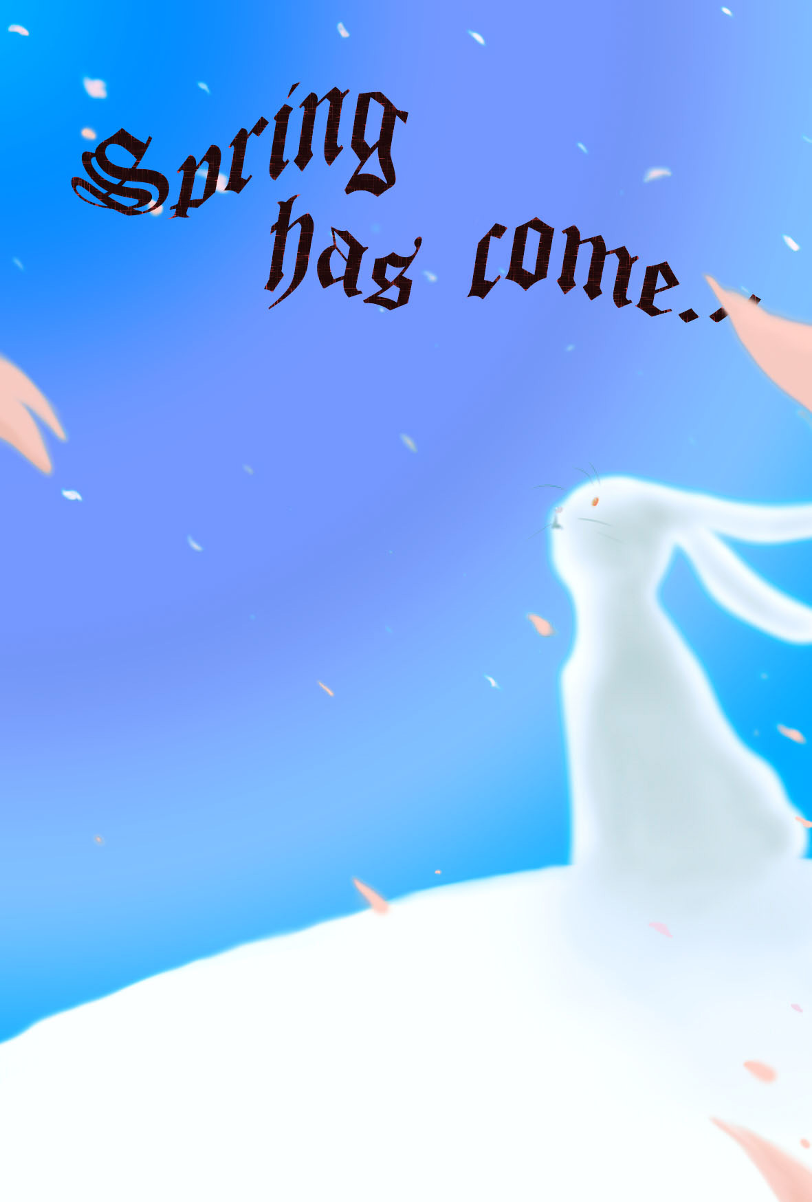 干支のウサギと、桜の花びらが舞ってる絵です。